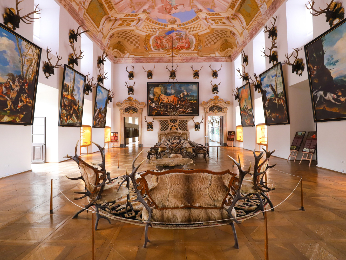 Zámek Ohrada byl postaven v letech 1708 - 1713 v barokním slohu pro knížete A. F. Schwarzenberga jako lovecký zámek. Muzeum lesnictví, myslivosti a rybářství je nejstarším loveckým muzeem v Evropě. První muzejní sbírky loveckých trofejí a vycpanin byly na barokním zámku Ohrada umístěny již v roce 1842. Zámek sám sloužil od samého počátku jako zázemí při pořádání parforsních honů a slavností.
